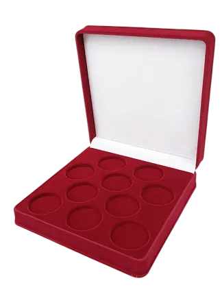 Футляр (186x192x50 мм) на 10 монет в капсулах (диаметр 46 мм), светло-бордовый