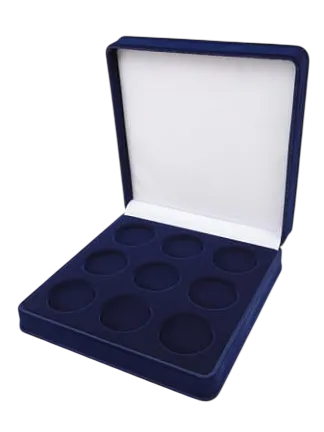 Футляр (160x160x33 мм) под 9 монет в капсулах (диаметр 44 мм), светло-бордовый