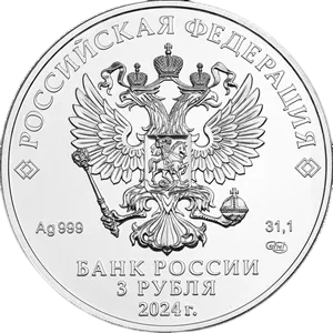 Аверс на монетах с 2016г: в центре — рельефное изображение Государственного герба Российской Федерации, над ним вдоль канта – надпись полукругом «РОССИЙСКАЯ ФЕДЕРАЦИЯ», обрамленная с обеих сторон сдвоенными ромбами, под гербом слева – обозначения драгоценного металла и пробы, справа – содержание химически чистого металла и товарный знак монетного двора, внизу в центре в три строки – надпись «БАНК РОССИИ», номинал монеты «3 РУБЛЯ», год выпуска.
