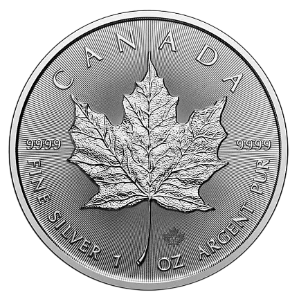 Обратная сторона украшена изображением кленового листа, символизирующего Канаду. В верхней части высечено слово «CANADA». По бокам кленового листа размещены цифры 9999, обозначающие чистоту серебра. Нижняя часть окаймлена надписью на английском «FINE SILVER 1 OZ» и на французском «ARGENT PUR», что переводится как «Чистое серебро 1 унция».